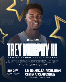 DURHAM, N.C. — NBA forward Trey Murphy III is coming home to give back to the community that raised him. In partnership with Durham Parks and Recreation (DPR), the New Orleans Pelicans star will host his annual Basketball Skills Development Clinic and Back-to-School Community Bash — two free events dedicated to empowering youth and preparing families for the upcoming school year.