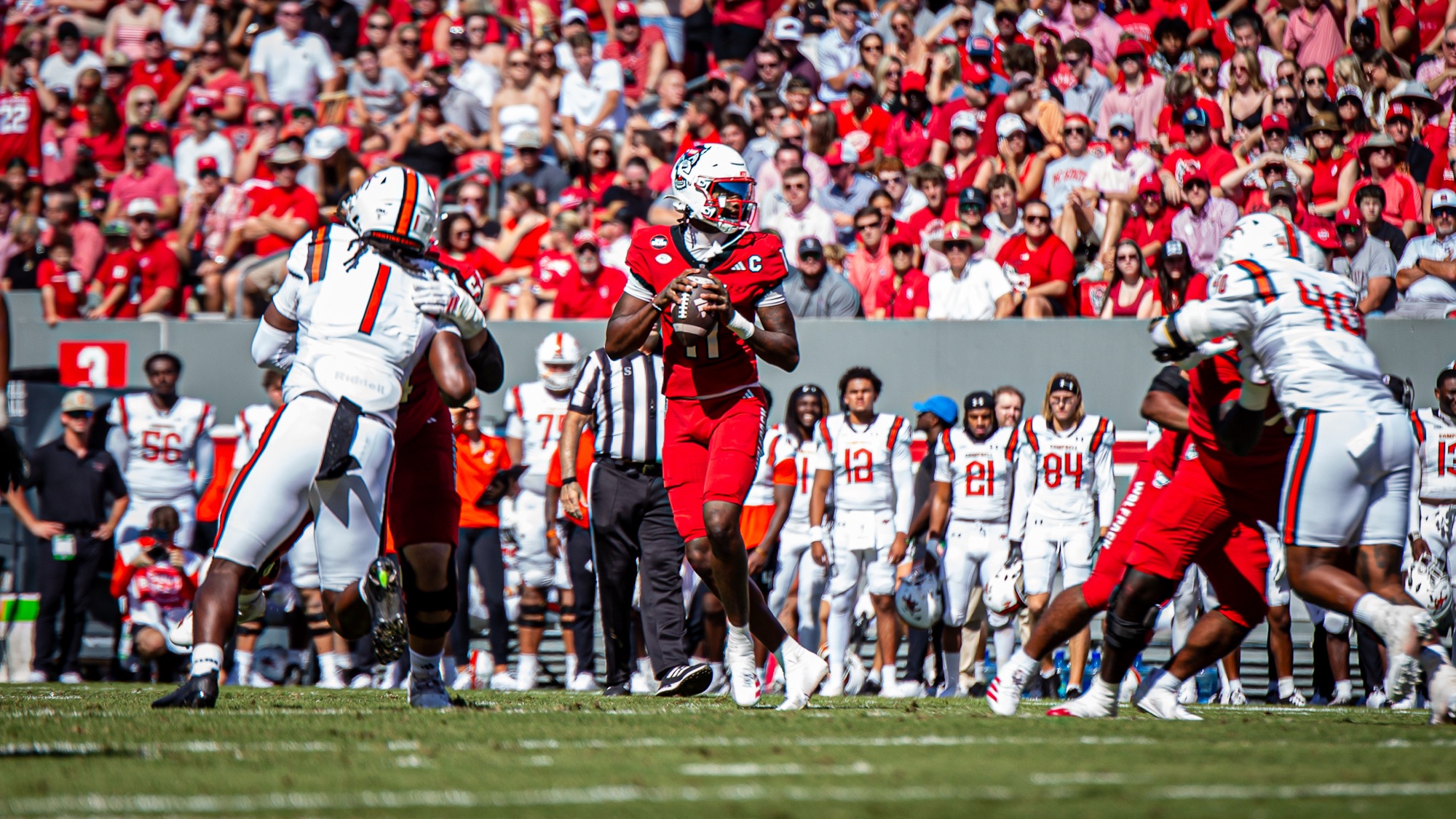 RALEIGH, N.C. – NC State amassed 482 first half yards and defeated visiting Campbell 56-10 on Saturday at Carter-Finley Stadium.