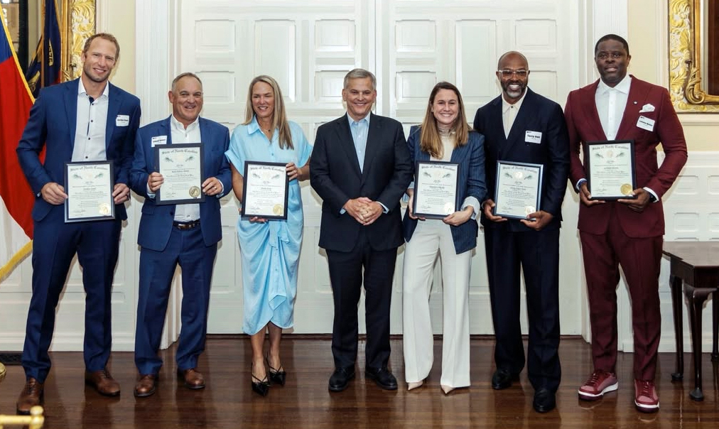 The award was presented by Governor Josh Stein during a ceremony at the Governor’s Mansion on October 3, celebrating six honorees who exemplify North Carolina excellence. Joining Coach Moton were Torry Holt (NC State football), Heather O’Reilly (UNC soccer), Jenny Levy (UNC lacrosse), Elliott Avent (NC State baseball), and Jordan Staal (Carolina Hurricanes) — a roster of athletic greatness representing the best of the state’s sports legacy.