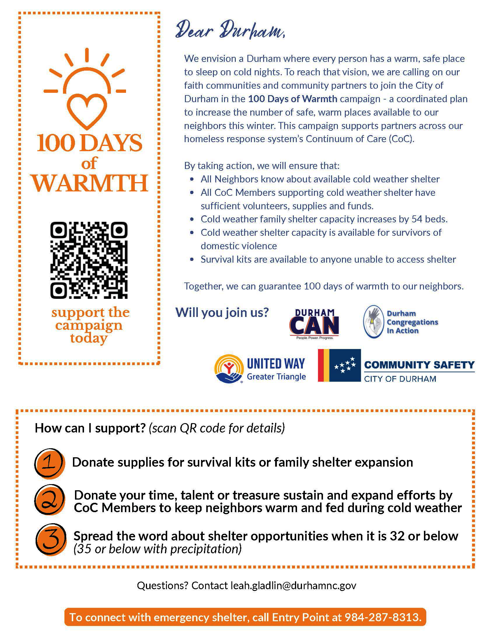 Together, Durham can guarantee 100 days of warmth for neighbors who need it most.
